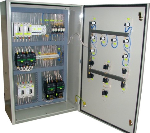 Щит А – это сигнальная часть, а щит Б – силовая часть. Все остальные варианты исполнения состоят из одного щита. В щите находятся органы управления, программируемый контроллер, силовые компоненты для управления работой приборов и аппаратов системы и устройства защиты.