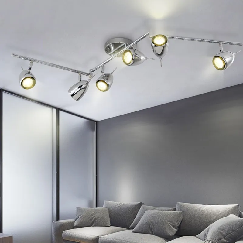 Устройства отличаются от точечных только тем, что в одном корпусе может находиться несколько источников света, которые можно направить самостоятельно. Такие конструкции больше всего похожи на люстры. Их основным преимуществом является возможность эффективно осветить все помещения и направить потоки света даже в отдаленные углы комнаты.